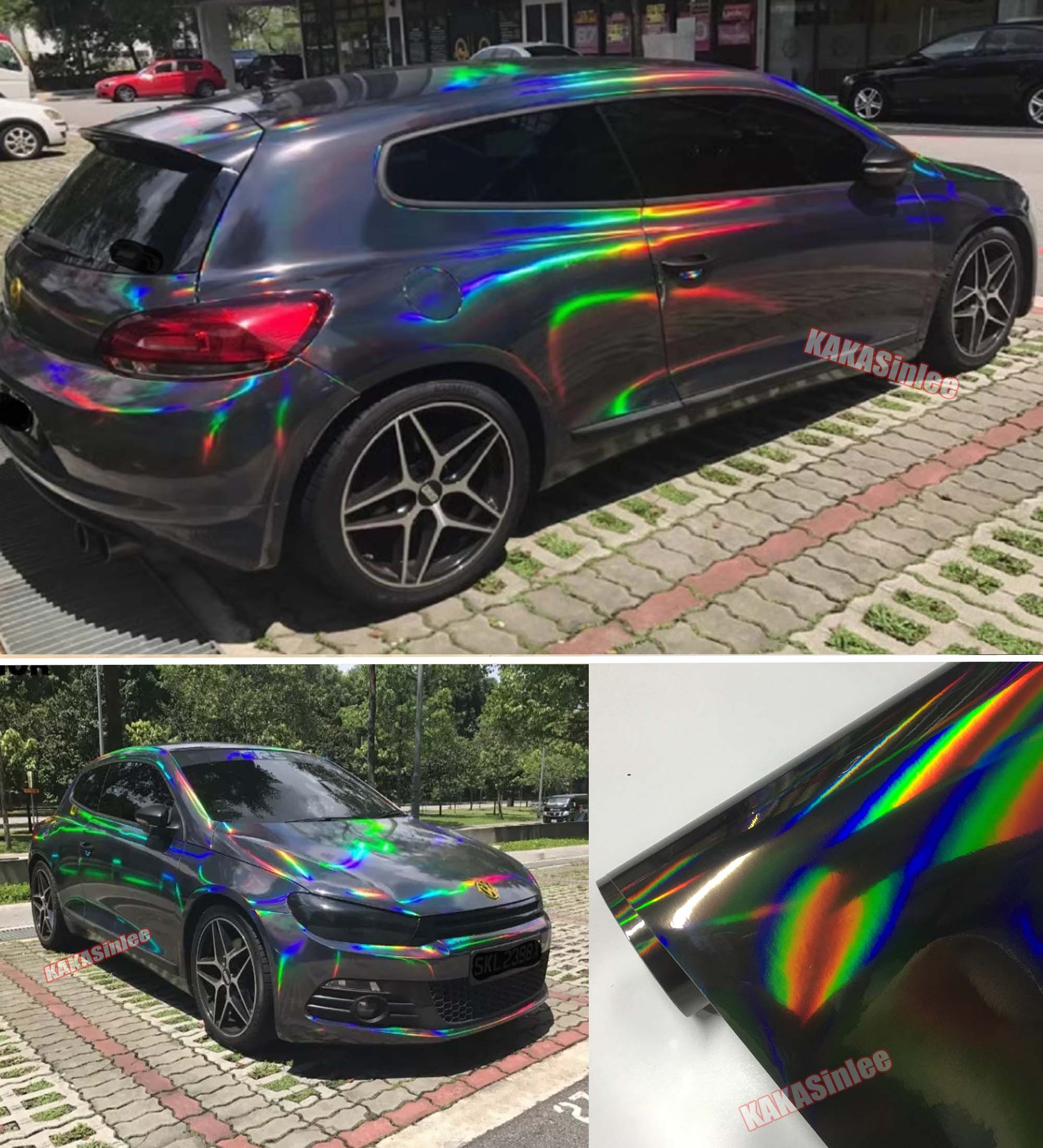 (PET) Whole Car Wrap - Glossy Rainbow Mirror Chrome Vinyl Sticker Gold Green